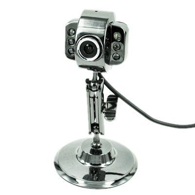 Connect with your world day or night using our Webcam with Night Vision. 6 bright LEDs will illuminate the darkness, with automatic brightness adjustment and color compensation. Fully adjustable base and head allows for perfect positioning. Great for Skype, ICQ, AIM, MSN, Yahoo, or net meetings!